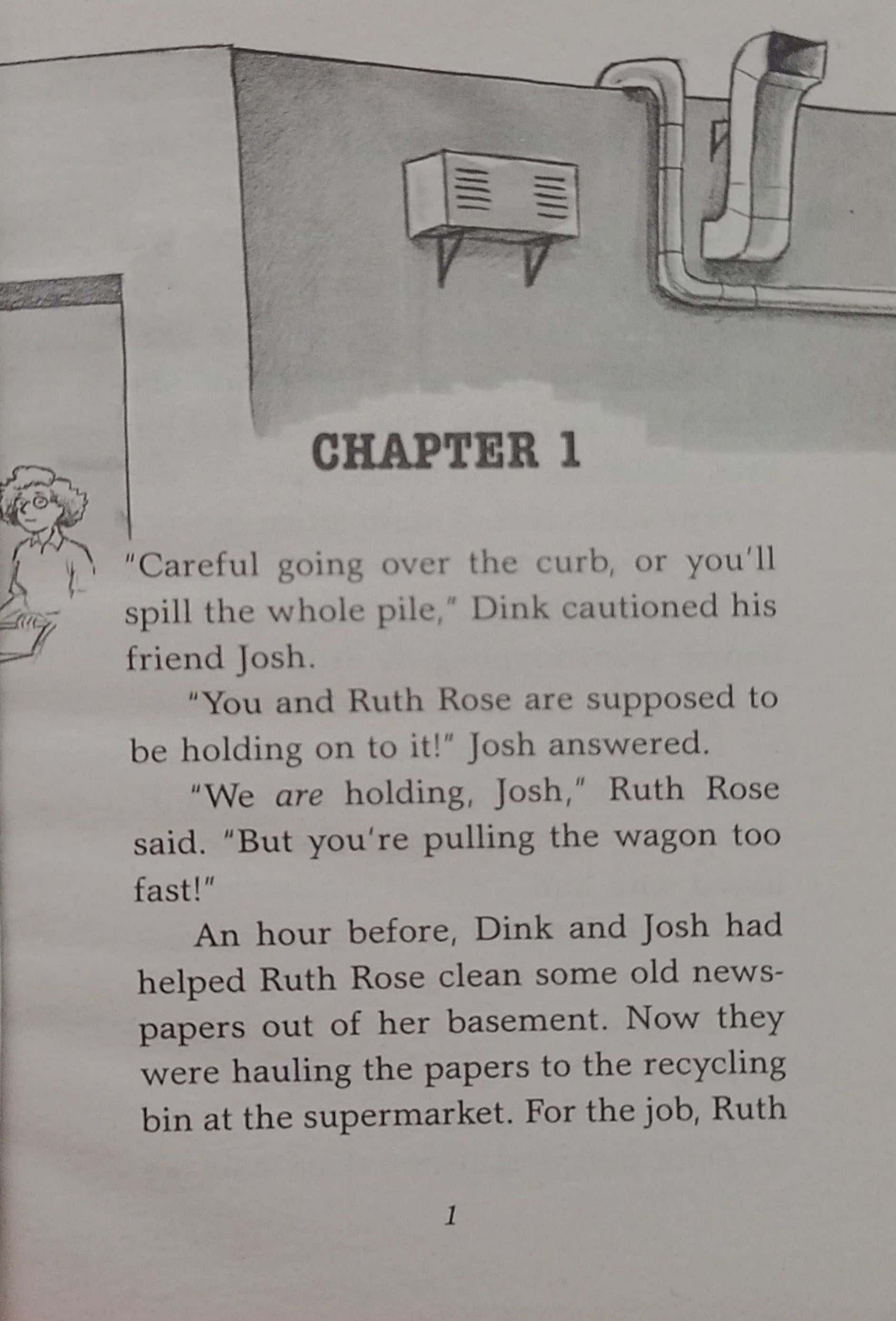 V is for Vampire . . . Grab your garlic! When the kids follow a mysterious pale and dark-haired stranger into Ellieâs Diner, he suddenly vanishes! Then they see a cut on Ellieâs neck. Could it be a vampire bite? And will Dink, Josh, and Ruth Rose be his next victims?