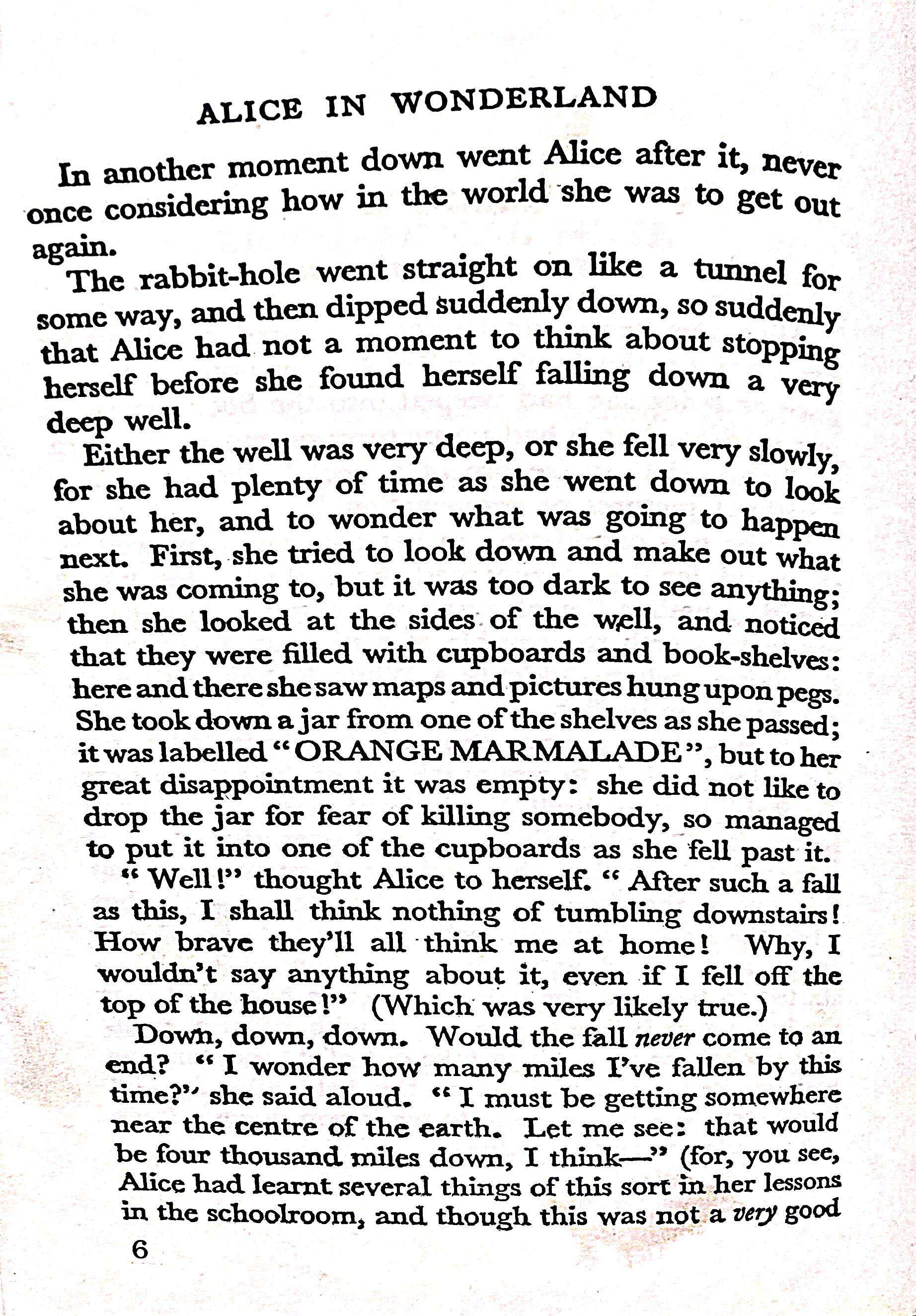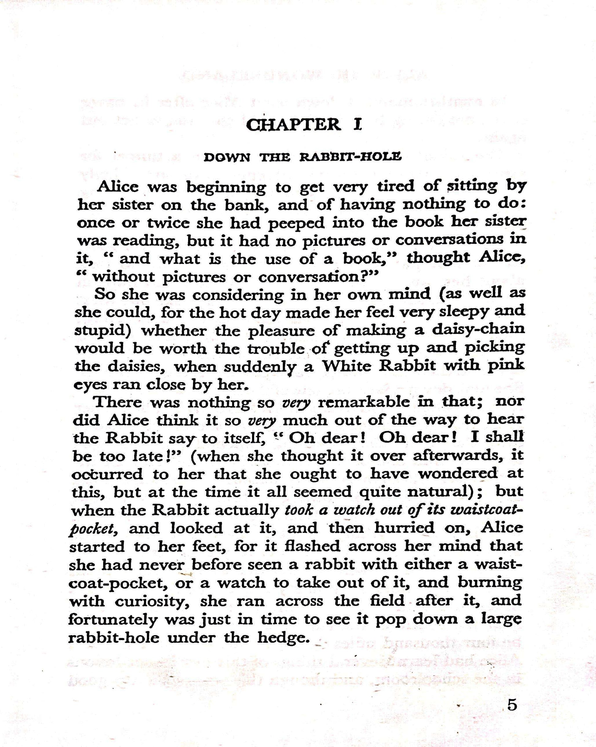 Alice's Adventures in Wonderland is a novel written by Lewis Carroll. It tells the story of a girl named Alice who falls down a rabbit hole into a fantasy world populated by peculiar creatures.