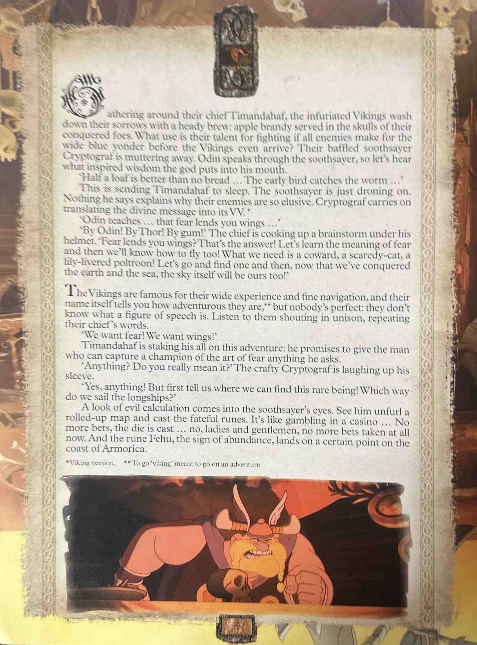 When the Vikings kidnap Justforkix, the timid but very trendy son of one of Chief Vitalstatistix' closest and most powerful friends, believing he has the key to the secret of the magic potion, Asterix and Obelix are sent on one of their most dangerous missions.