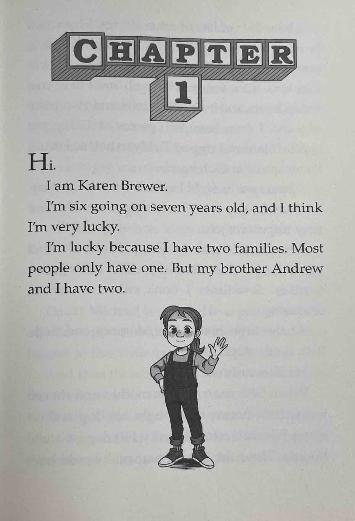 Karen's Witch is the first book in the Baby-Sitters Little Sister series. Karen is excited to have a new witch costume for Halloween, but when she thinks she sees a real witch, she gets scared. Her older brother and sister try to convince her that witches aren't real, but Karen is still unsure.
