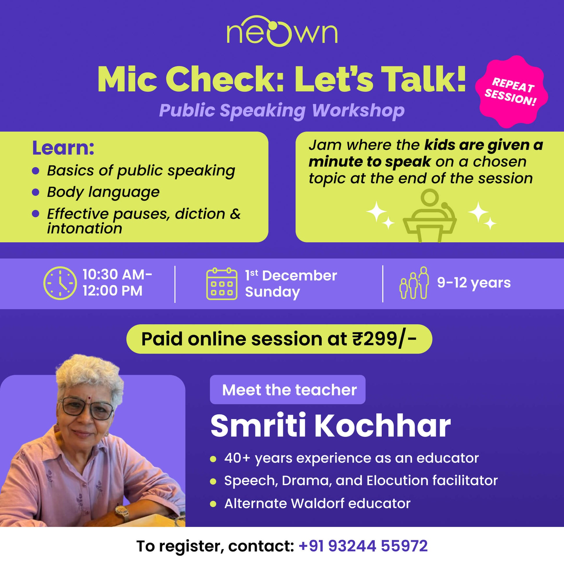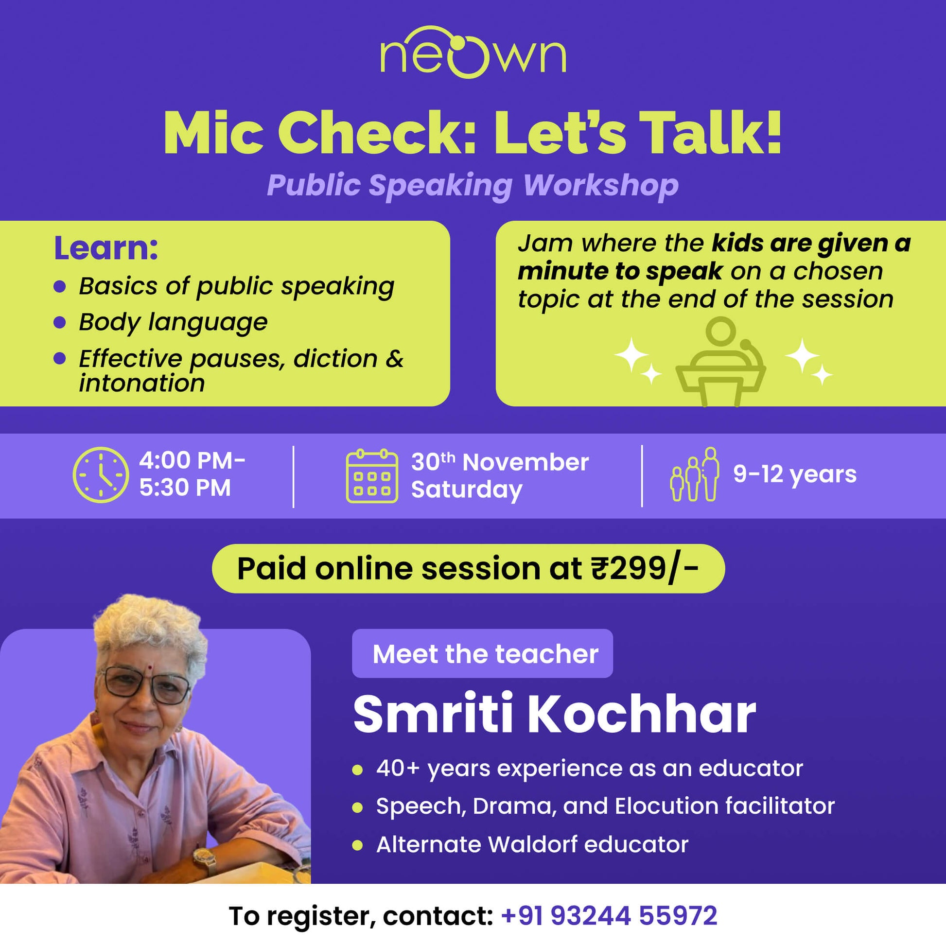 'Mic Check: Let's Talk!' Public Speaking Workshop: neOwn x Smriti Kochhar