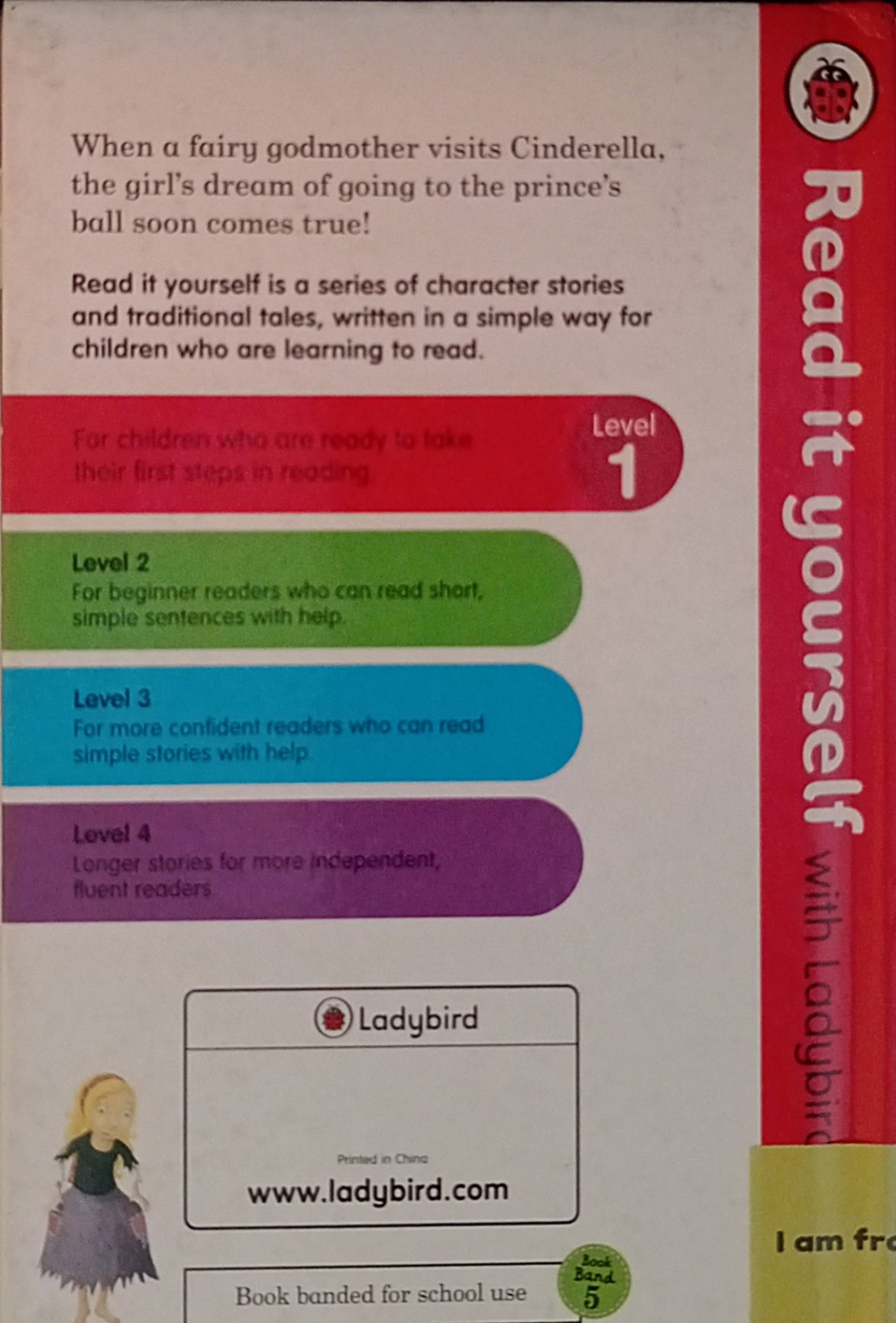 Read it Yourself with Ladybird-Cinderella is a classic fairy tale that has been retold for young children and is perfect for early readers or for reading aloud. This book is a Level 1 Read it Yourself book, suitable for very early readers who are ready to take their first steps in reading real stories. Each simple story uses a small number of frequently repeated words.