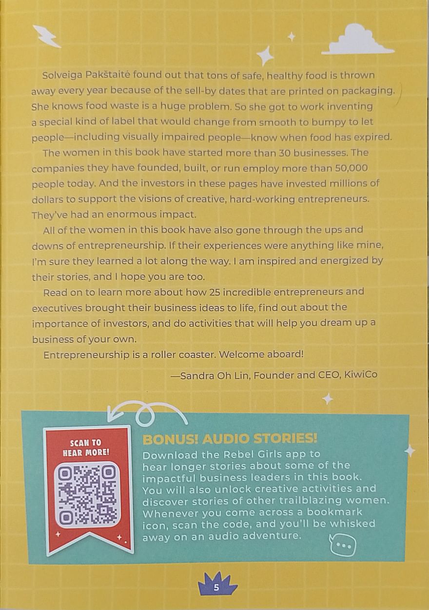 Rebel Girls Awesome Entrepreneurs 25 Tales of Women Building Businesses is a collection of inspiring stories of women who have built successful businesses. The book features 25 stories of women from different parts of the world who have overcome challenges and obstacles to achieve success in their respective fields. The book is aimed at children and young adults and is a great source of inspiration for anyone who wants to start their own business.