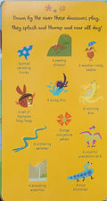 This book is an interactive search and find book that takes young readers on a journey through the prehistoric world of dinosaurs. It is filled with colorful illustrations and fun facts about different types of dinosaurs.