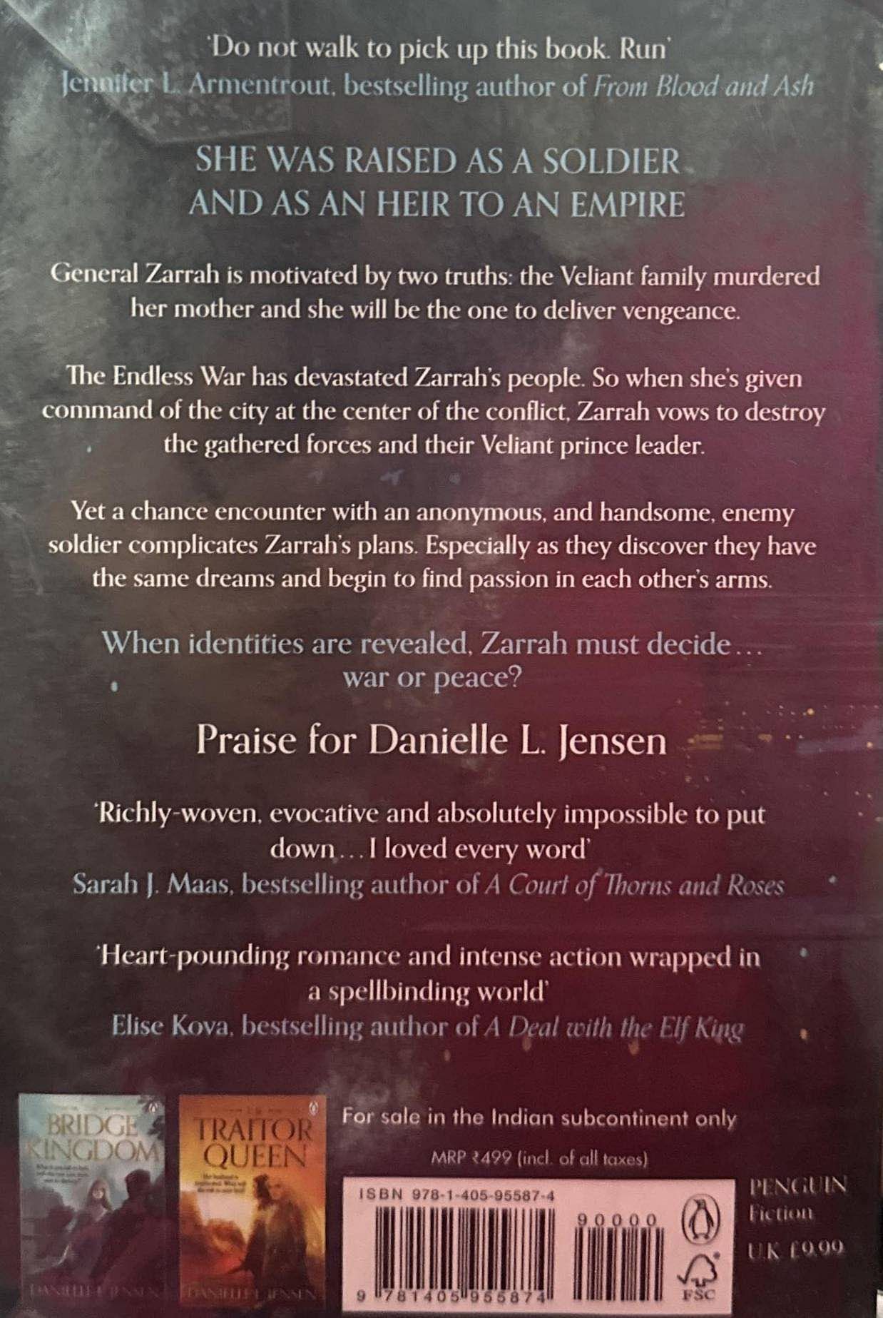 General Zarrah is motivated by two truths: The Veliant family murdered her mother and that she will be the one to deliver vengeance. The Endless War has devastated Zarrah's people. So when she's given command of the city at the center of the conflict, Zarrah vows to destroy the gathered forces and their Veliant prince leader. Yet a chance encounter with an anonymous, and handsome, enemy soldier complicates Zarrah's plans. Especially as they discover they have the same dreams - and begin to find passion in each other's arms.