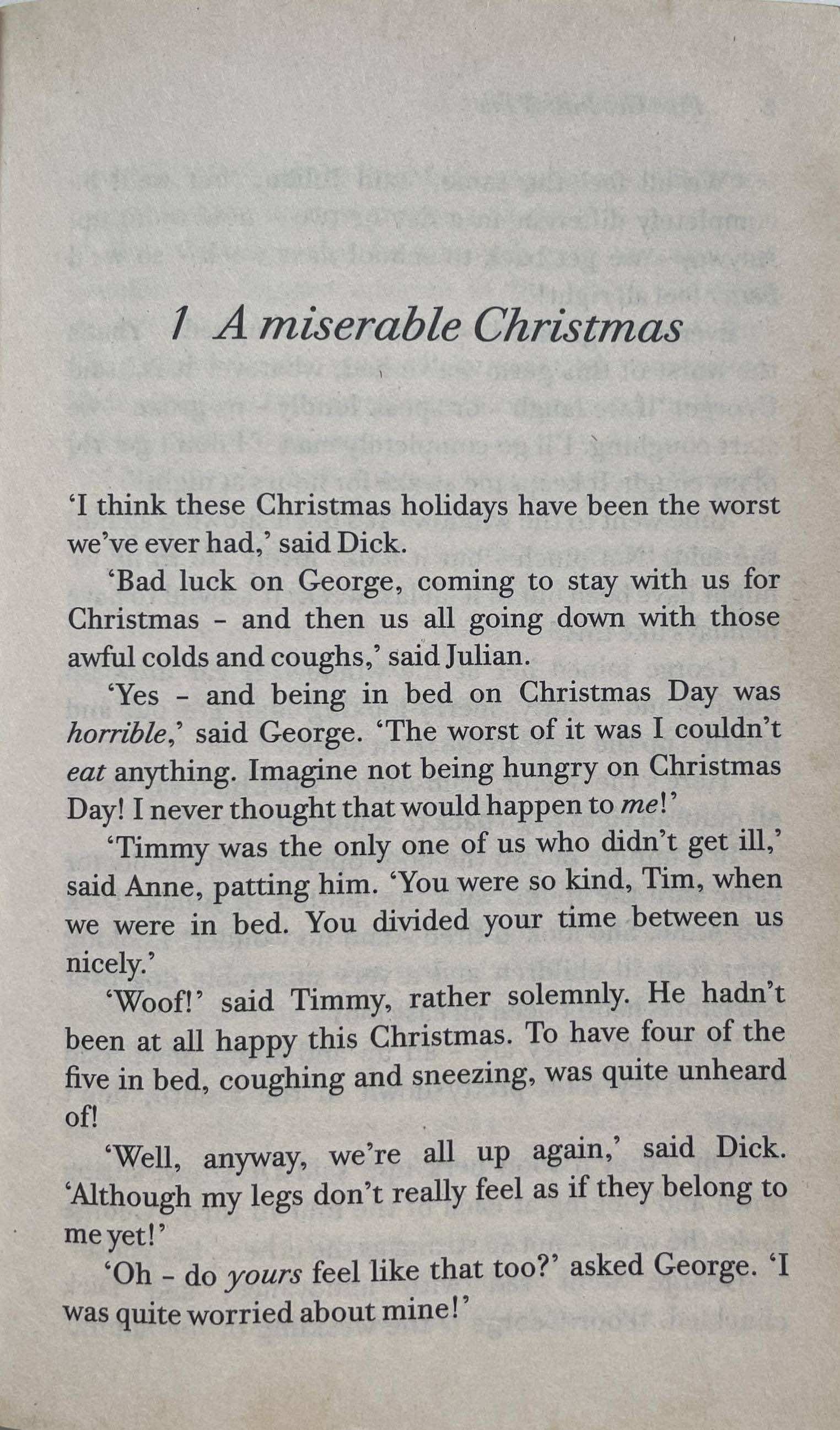 The Famous Five are on a skiing holiday when they spot a strange figure in the snow. Who is he and what does he want? Can the Five solve the mystery?