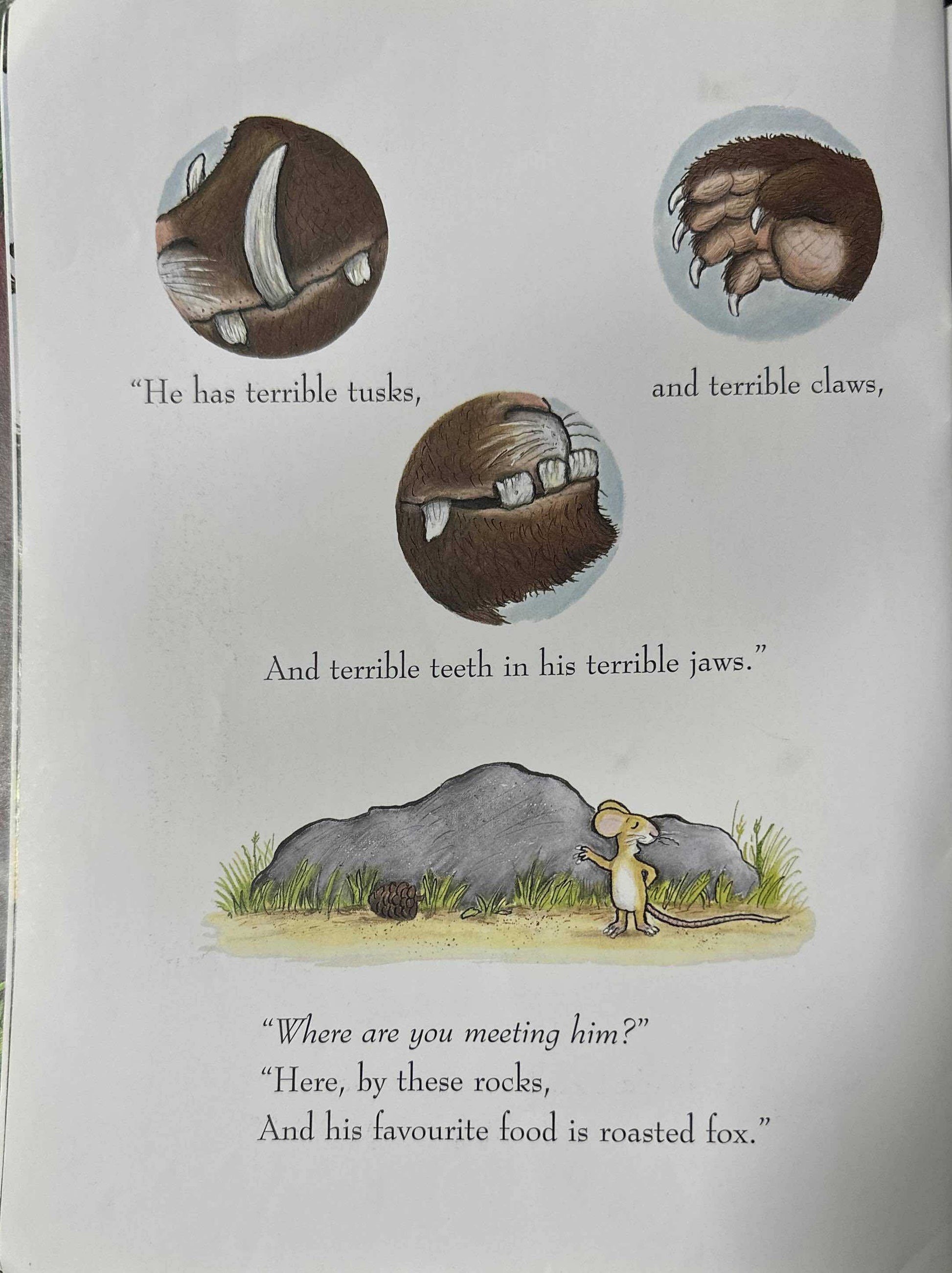 A clever mouse uses his wits to outsmart predators in the deep, dark woods. But what will happen when he meets the Gruffalo?