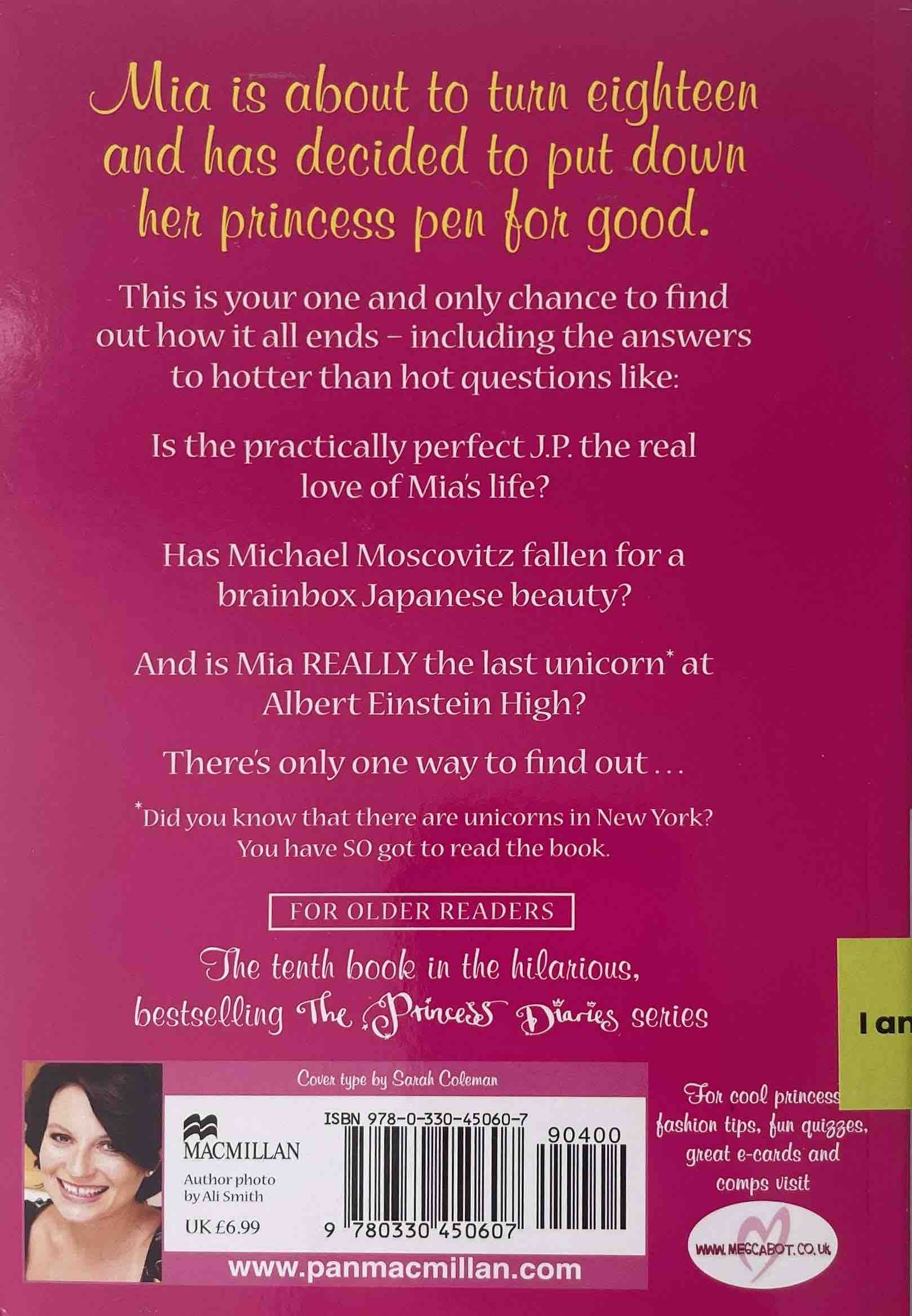 The tenth book in the #1 New York Times bestselling Princess Diaries series by Meg Cabot. It's Mia's senior year, and things seem great. She aced her senior project, got accepted to her dream college(s), and has her eighteenth birthday gala coming up . . . not to mention prom, graduation, and Genovia's first-ever elections. What's not to love about her life? Well . . . everyone adores her dreamy boyfriend, J.P., but Mia is not sure he's the one. Her first love, Michael, is back from Japan . . . and back in her life. That senior project? It's a romance novel she secretly wrote, and no one wants to publish it. And her father is losing in the Genovian polls—to Mia's loathsome cousin René! With not just Genovia's but her own future hanging in the balance, Mia's got some choices to make. And what she decides might determine not just the next four years but . . . forever!