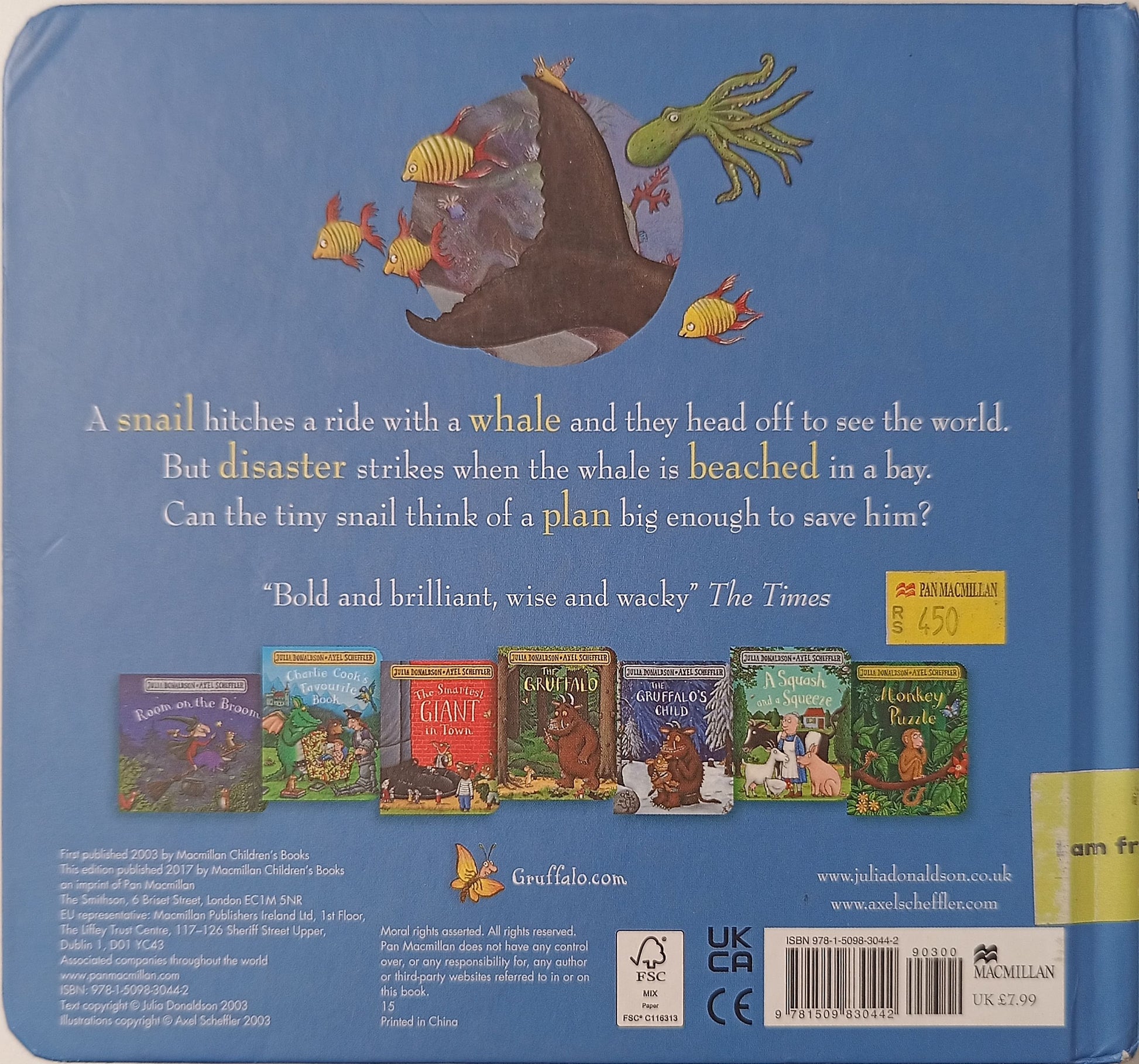 The Snail and the Whale is a delightful tale of adventure and friendship by the unparalleled picture book partnership of Julia Donaldson and Axel Scheffler, creators of The Gruffalo. One little snail longs to see the world and hitches a lift on the tail of an enormous whale. Together they go on an amazing journey, past icebergs and volcanoes, sharks and penguins, and the little snail feels so small in the vastness of the world. But when disaster strikes and the whale is beached in a bay, it's the tiny snail's big plan that saves the day.