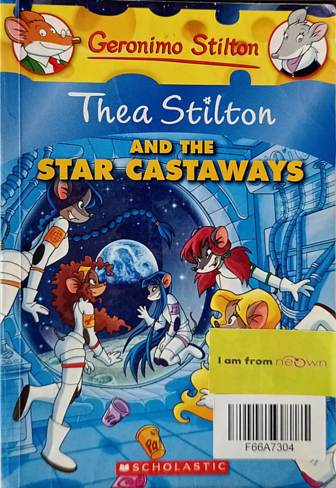 Thea Stilton is out of this world! A professor at Mouseford Academy is organizing a trip to outer space, and the Thea Sisters are invited. The mouselings are headed on a fabumouse mission... to the moon! After much preparation, the mice blast off. But when they arrive at their lunar vacation spot, things start to go wrong, including spaceship wrecks and rebellious robots. Can the Thea Sisters save the day? Find out in an adventure that's out of this world!
