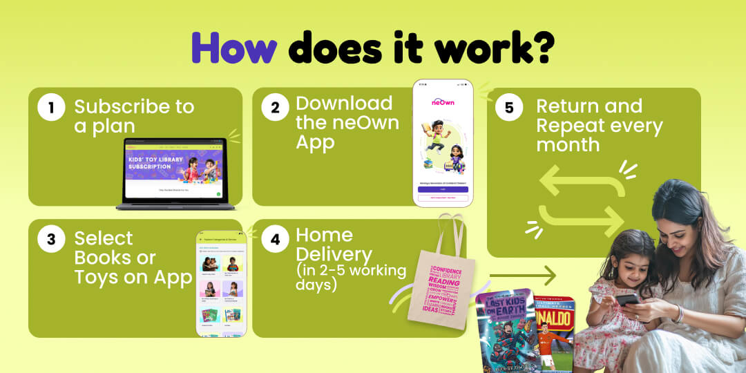 No, you cannot get books for both children in one library subscription. You can subscribe to the ‘2 Siblings’ plan to get books for both your children, where you can get 3 books for each child or 5 books for each child. The reason for this is that we create a unique profile for each child with all their details and provide an age-appropriate curated catalog of books to choose from. This will enable you to see each child’s unique progress as well as all the books they have read in a more organised manner.