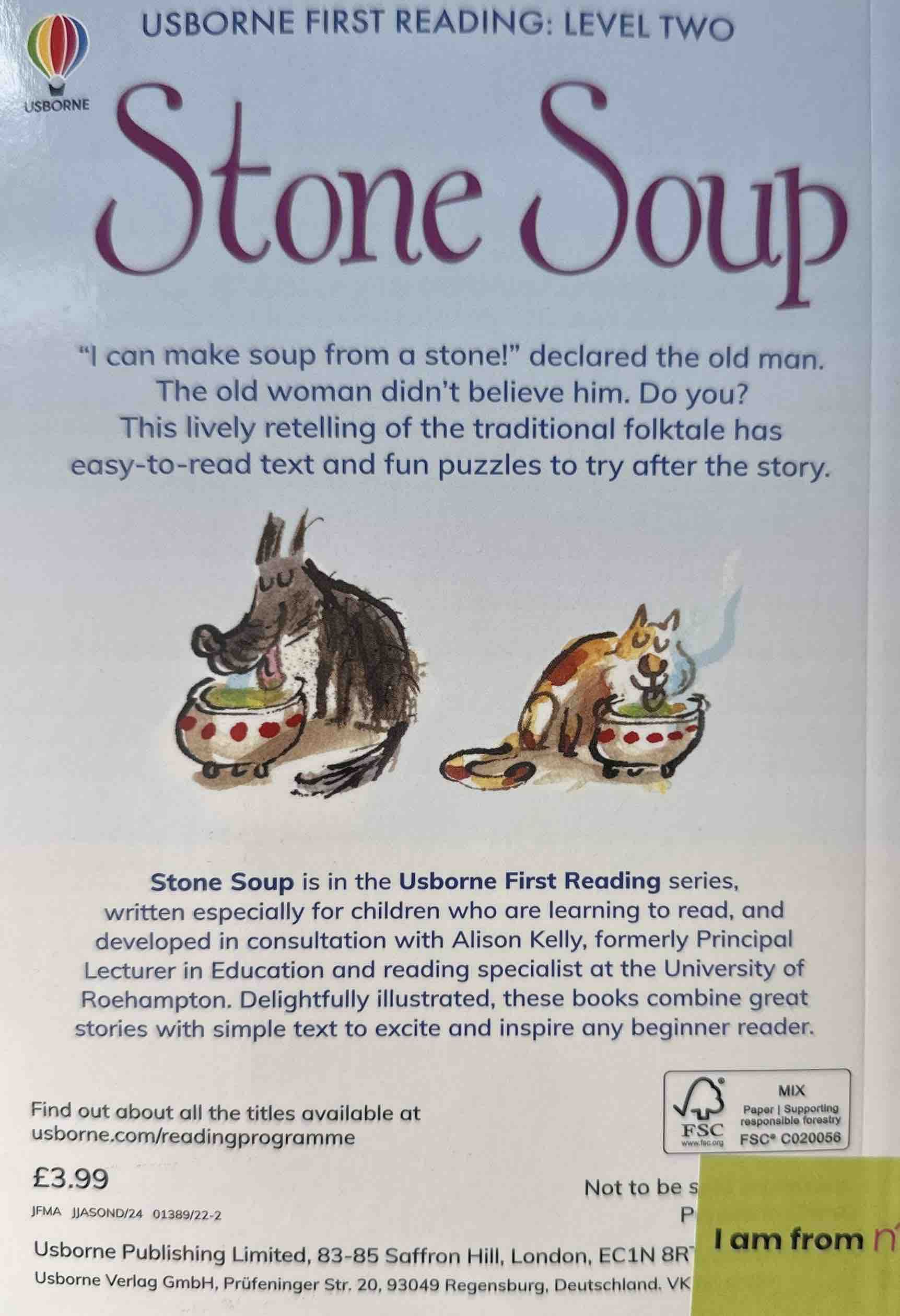 "I can make soup from a stone!" declared the old man. The old woman didn't believe him. Do you? Simply written in lively, flowing text Usborne First Reading books are designed to capture the imagination and build the confidence of beginner readers.