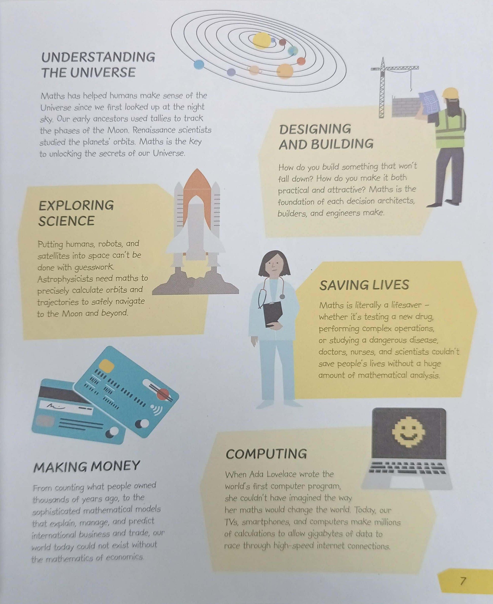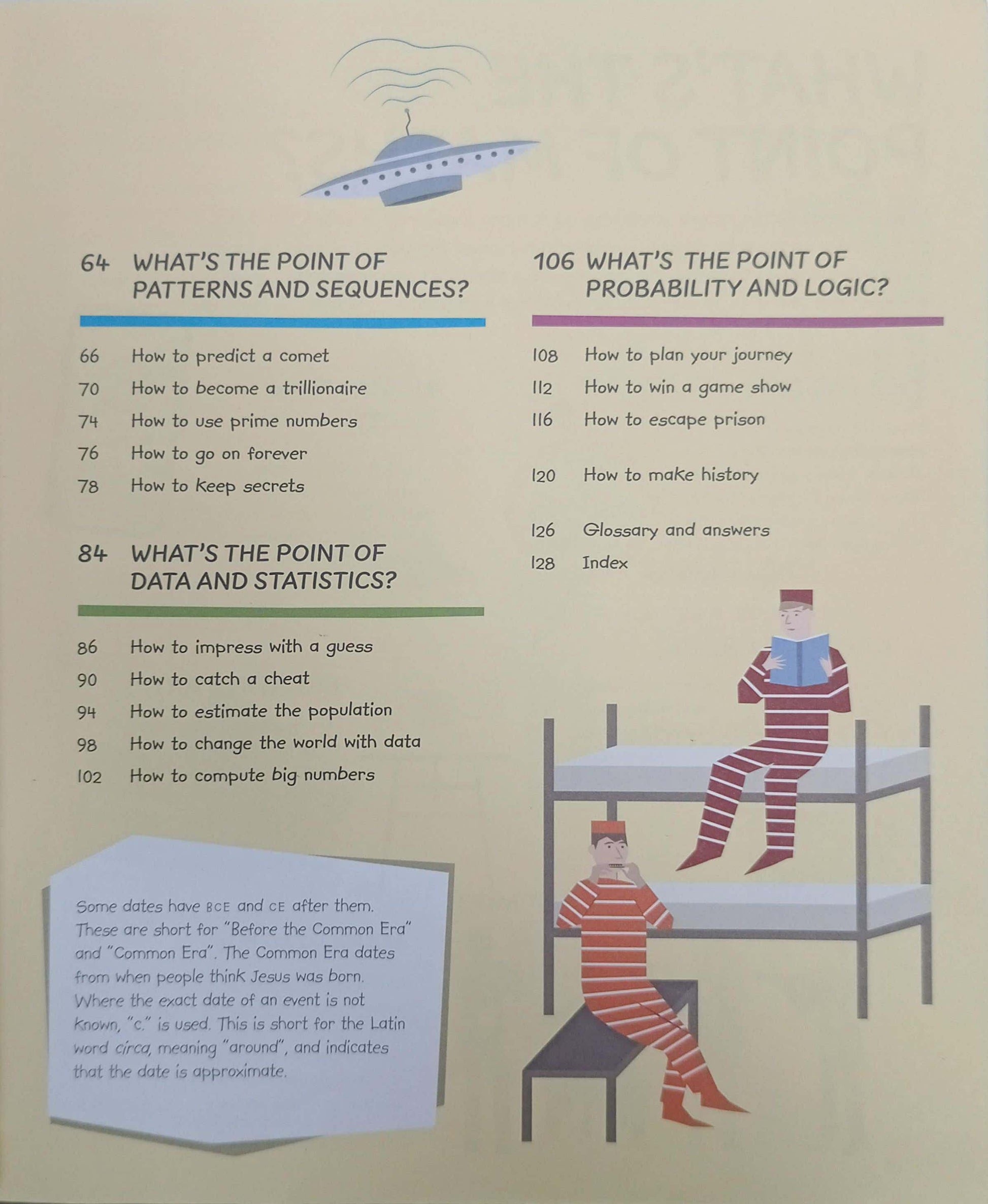 Incredible historical stories explore the often surprising origins of the maths we use today, from number sequences to coordinates. Crazy facts, magic tricks, and mathematical brainteasers will amuse and entertain even the most reluctant math students. Find out why an hour has 60 rather than 100 minutes and how codes keep our secrets safe. Colourful and uncluttered illustrations make mathematical explanations easy to grasp in seconds and make this user-friendly book simple to navigate and a joy to browse and read. What's the point of Maths? Is perfect for those who need some inspiration when it comes to numbers. It combines stories from history with simple visual explanations to bring Maths to life. From measuring a pyramid to predicting comets, from counting like the Babylonians to becoming a trillionaire, it shows children why core Maths ideas were discovered and invented and how to apply them today - in the classroom and the real world! Accompanying the fascinating stories are puzzles, games, and amazing facts, as well as a lively challenge to help bring each of the topics to life. Stylish, colourful illustrations make the maths Fun and unintimidating, while simple diagrams and steps make explanations easy to grasp in seconds. Throughout the book, worked examples show readers how to solve simple Maths challenges, encouraging children to improve their Maths skills with hands-on practice.
